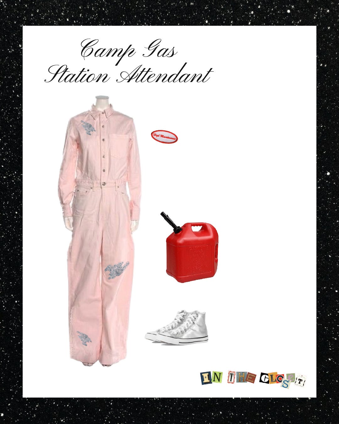 Tight pastel coveralls (baby blue or pink), a name patch, and glittery “oil” stains. The gay Americana fever dream.