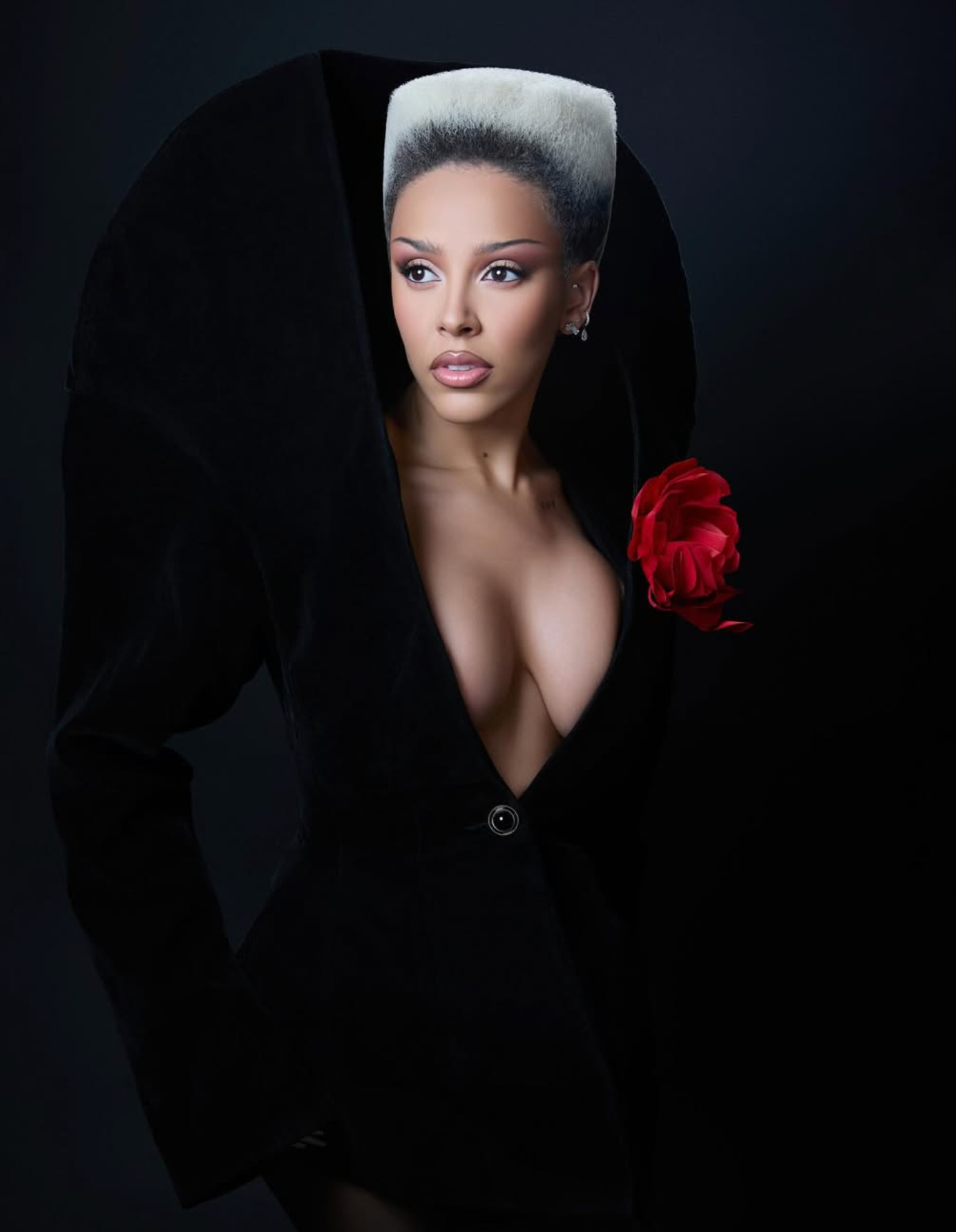 This ’80s revival isn’t confined to magazines or runways—celebrities are flaunting it everywhere. Hailey Bieber attended her Rhode Skincare launch in a pewter Saint Laurent suit serving sleek, chic, and impossibly sharp. Demi Moore stunned at the Oscars Nominees Dinner in an ivory‑shouldered blazer, a perfect blend of Hollywood glam and boardroom edge. And Doja Cat, in full Grace Jones mode, has been promoting her upcoming album Vie with bold shoulder pads and sculptural silhouettes that make you stop scrolling.