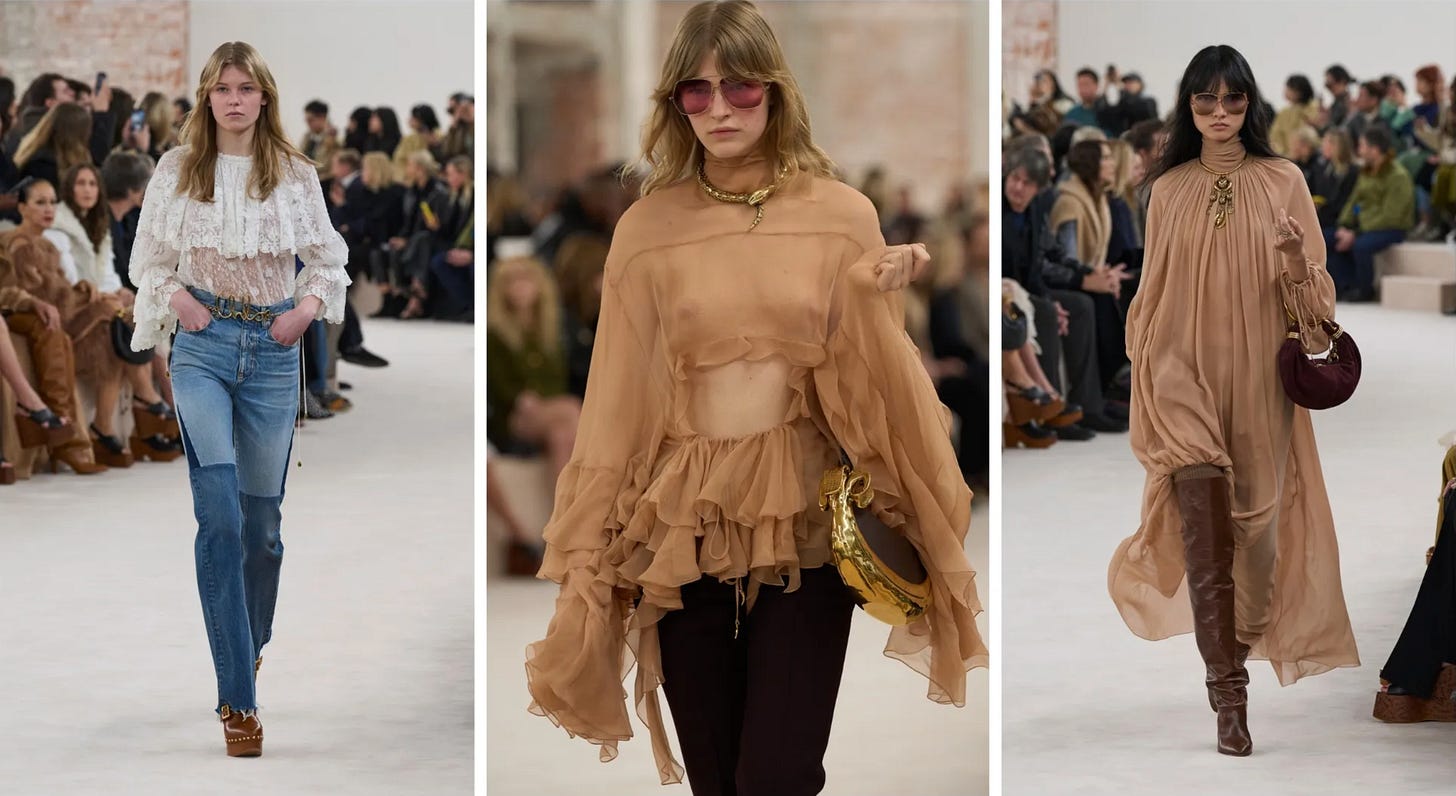Recent runway shows have taken a lot of inspiration from the boho aesthetic, bringing a fresh take on the free-spirited style. Fendi, Valentino, and Chloe all showcased a ton of beadwork and embroidery, which are key to the vibe. There’s a definite nod to the ‘70s with maxi dresses, wide sleeves, and earthy color palettes, but this time, it feels more elevated and polished.