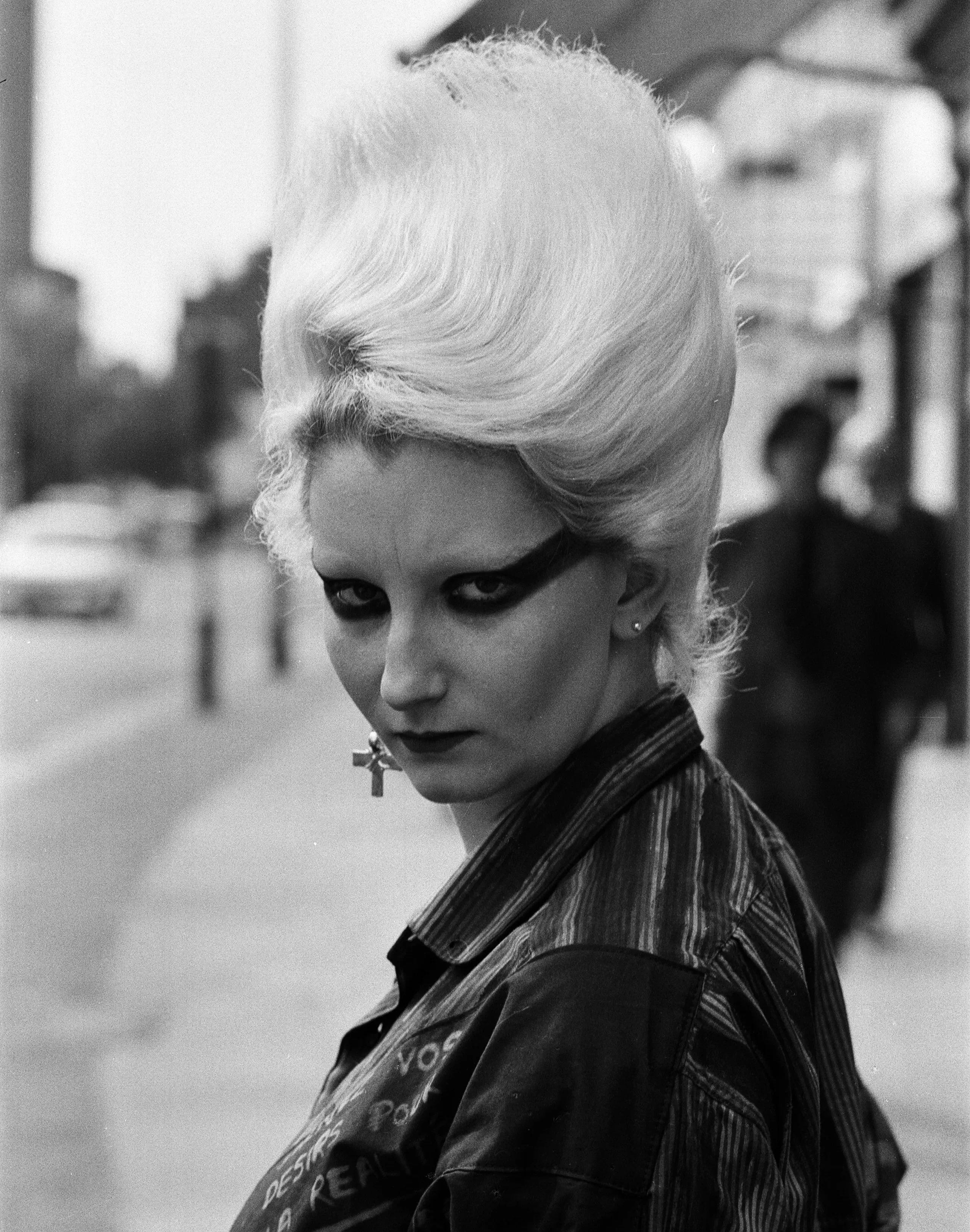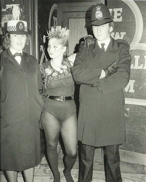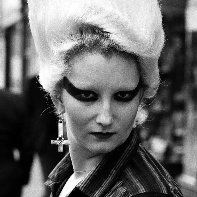 Come the 70s, she made the move from her hometown to the big city of London, abandoning her conservative upbringing for a world of fashion, art, music, queer culture, and what might genuinely have been some of the greatest nightlife of all time. Around this time, she walked into 430 King’s Road, a boutique called SEX (at the time). In gold stilettos and a towering platinum bouffant, she left a lasting impression on the shop’s owner, Vivienne Westwood.