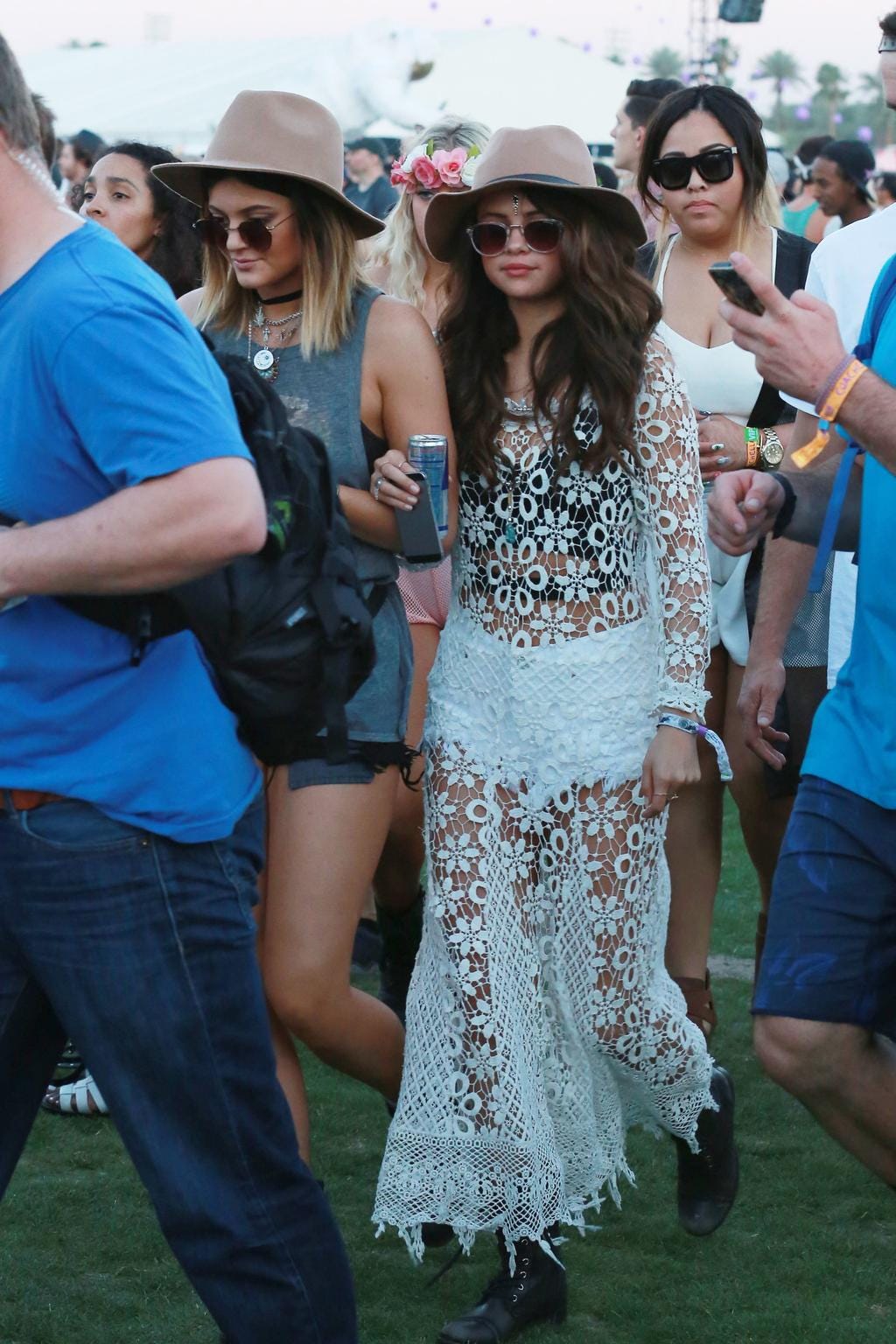 Another individual who has pulled some iconic looks in the valley past weekends is Kylie Jenner. The King Kylie era was everything for festival fashion. The blue hair? The wide rimmed hats? The chokers? It was everything. This year, we saw her in…a white baby tee…and white jeans. Wow!!